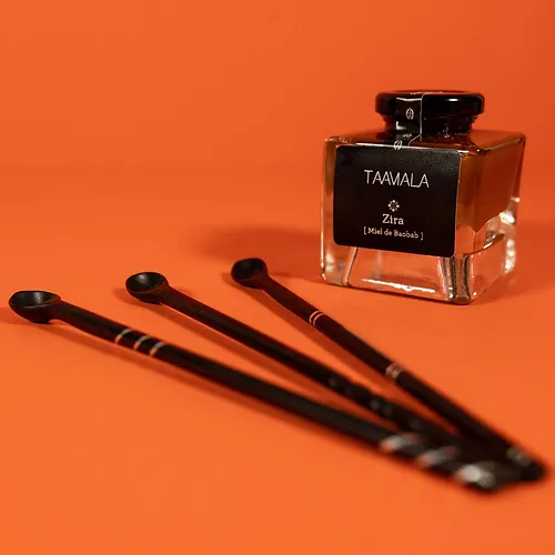 Pour rendre toujours plus unique et savoureuse chaque dégustation de vos miels, TAAMALA présente ses cuillères à miel en bois d’ébène « KUTU ». Ces cuillères en matériaux nobles et durables sont également respectueuses de l’environnement. Celles-ci associent solidité, commodité et design, à travers l’élégance de notre signature. Les artisans ébénistes avec lesquels nous travaillons au Mali ont un savoir-faire inimitable.